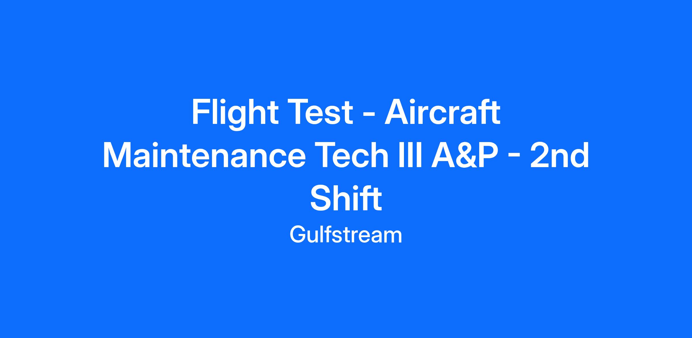 Flight Test - Aircraft Maintenance Tech III A&P - 2nd Shift in GAC Savannah
