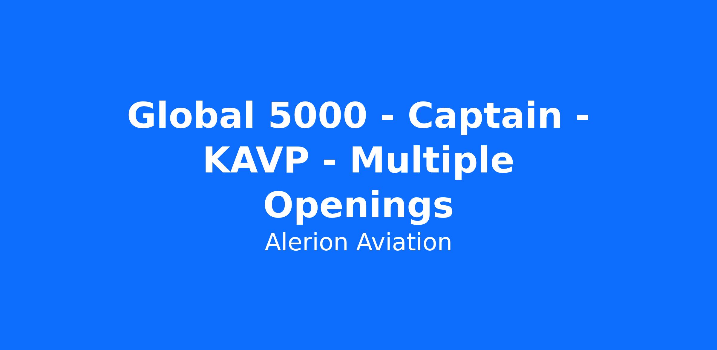 Alerion Aviation is looking for multiple Global 5000 Captains to join our team for Part 135/91 operations based out of Scranton , PA.