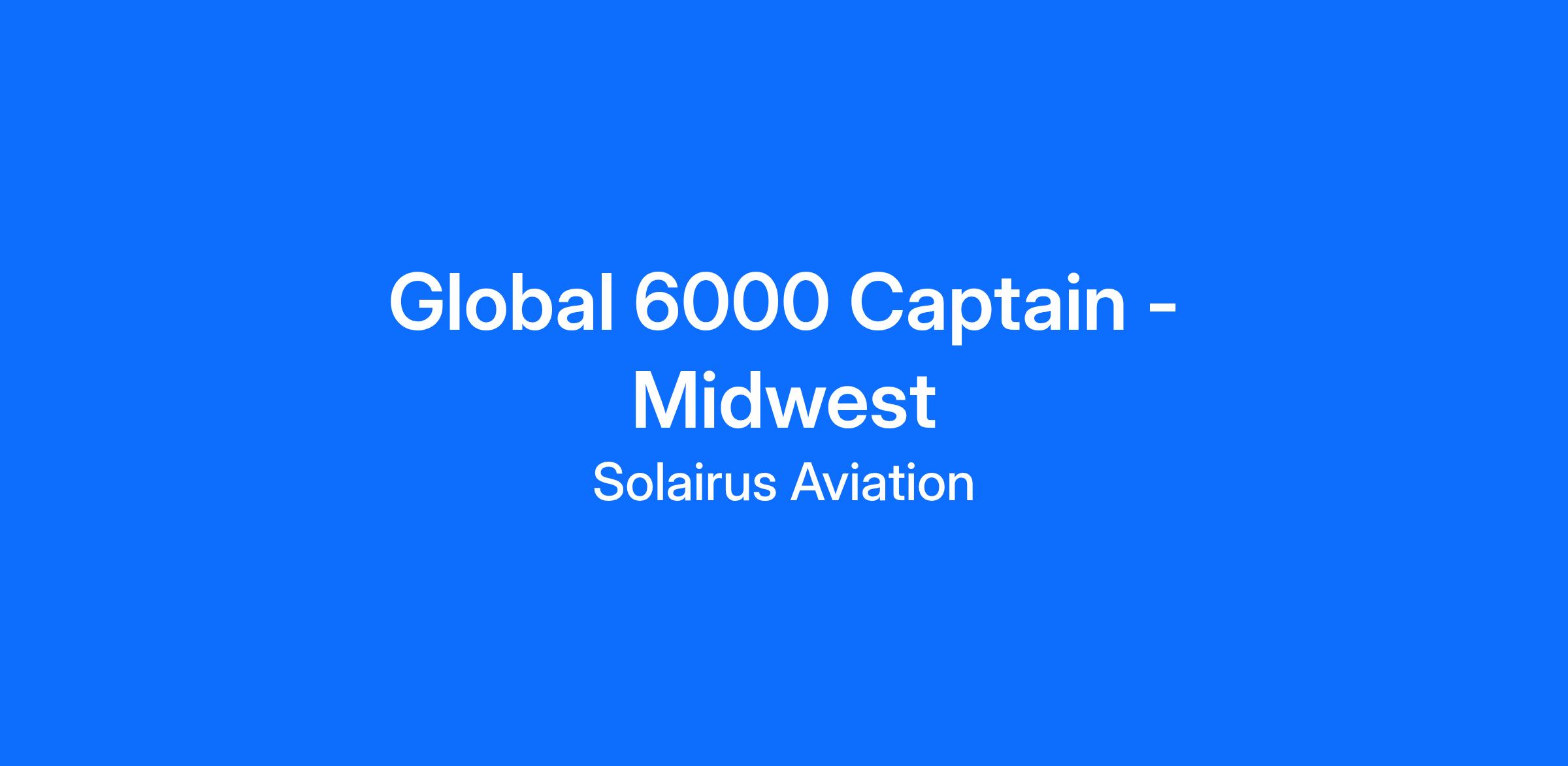 Solairus Aviation is currently searching for a Full-Time Global 6000 Captain to join an operation in the Midwest USA. The ideal candidate will need to be a standout colleague while seeking excellence in every aspect of his/her performance. Join a hardworking team who strives to safely and expertly meet the travel needs of our clients while adhering to Solairus’ unique culture of safety, service, and integrity.