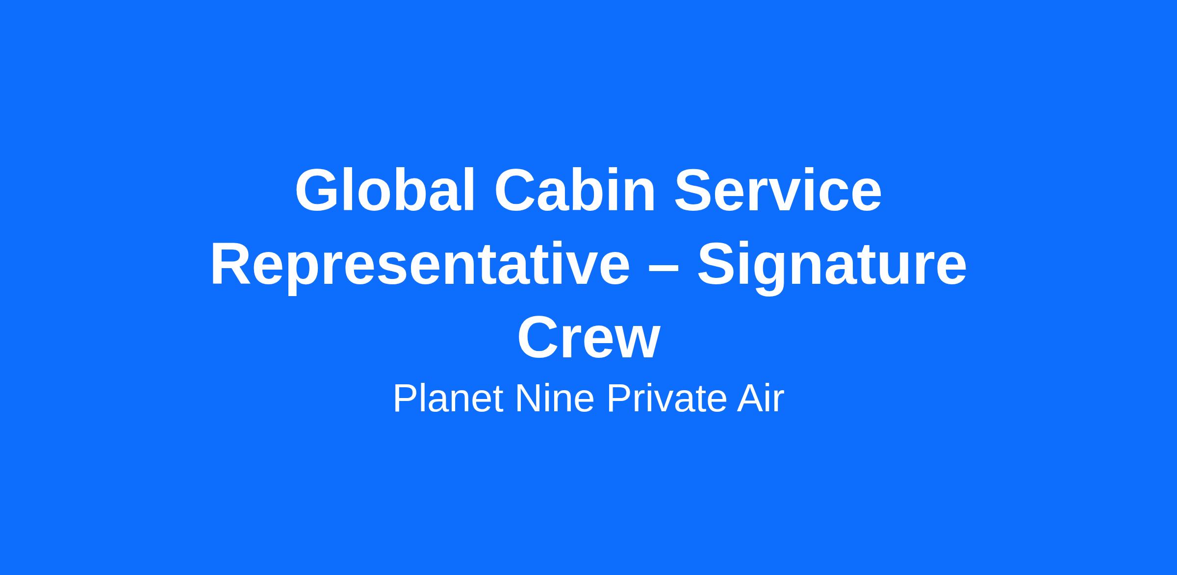 Job Title | Global Cabin Service Representative – Signature Crew |