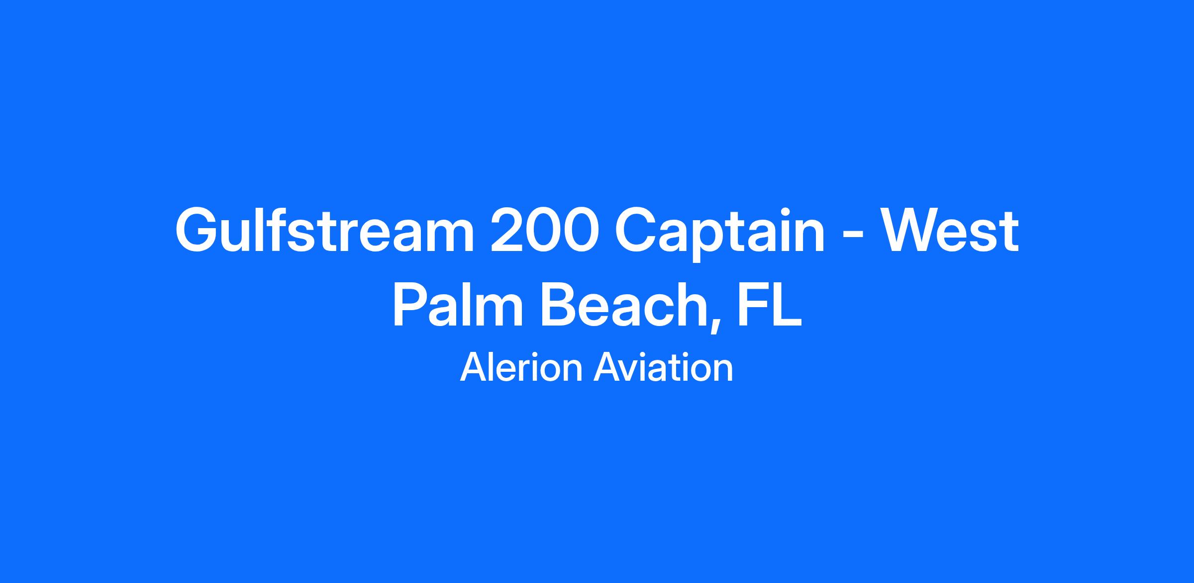 Alerion Aviation is looking for Captains to join our Gulfstream 200 Pilot Pool for Part 135/91 operation based out West Palm Beach, FL.