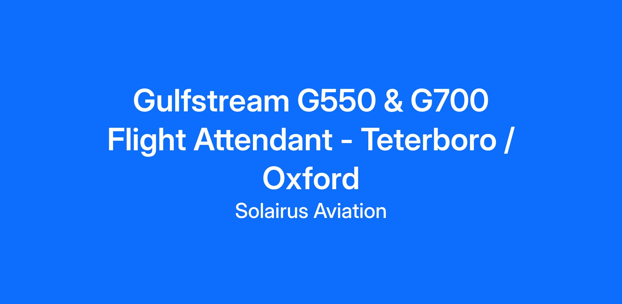Gulfstream G550 & G700 Flight Attendant - Teterboro / Oxford