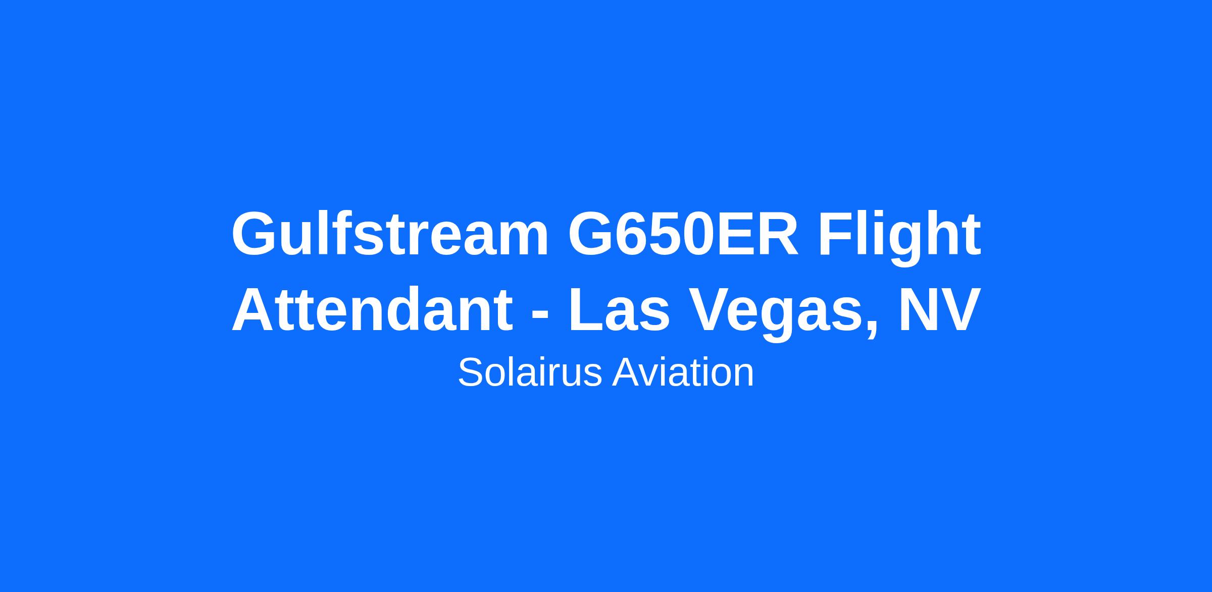 Gulfstream G650ER Flight Attendant - Las Vegas, NV