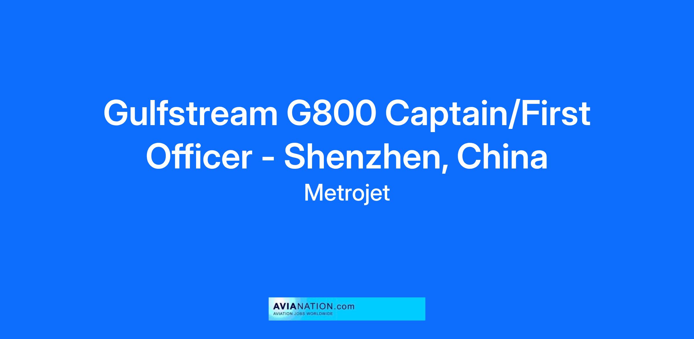 Gulfstream G800 Captain/First Officer - Shenzhen, China