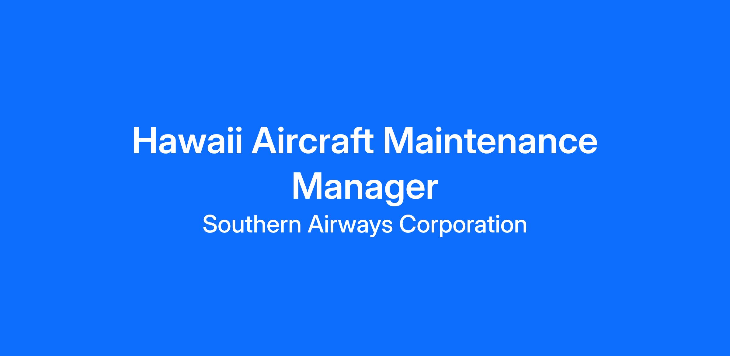 JOB DESCRIPTION: AIRCRAFT MAINTENANCE MANAGER / HAWAII