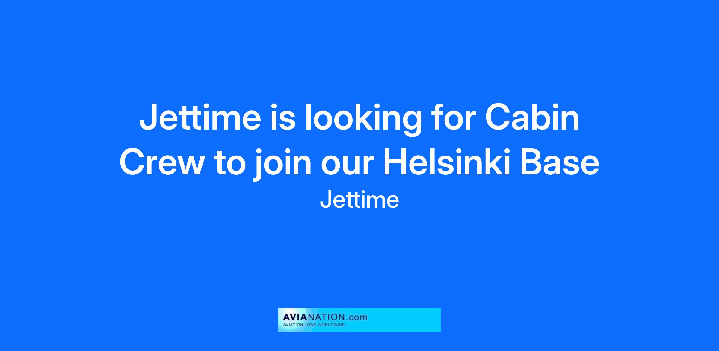We are delighted to announce that Jettime is recruiting Cabin Crew to our base in Helsinki, Finland.