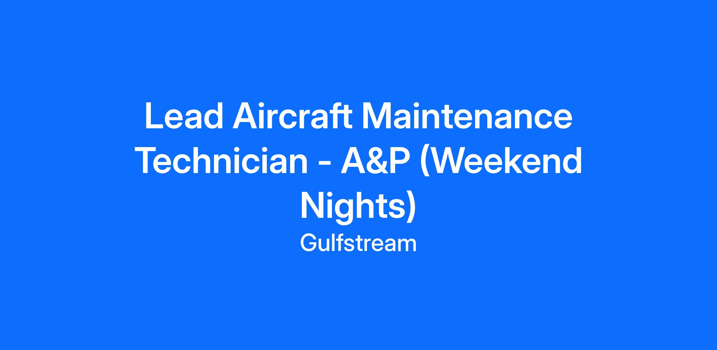 Lead Aircraft Maintenance Technician - A&P (Weekend Nights) in GAC St. Louis