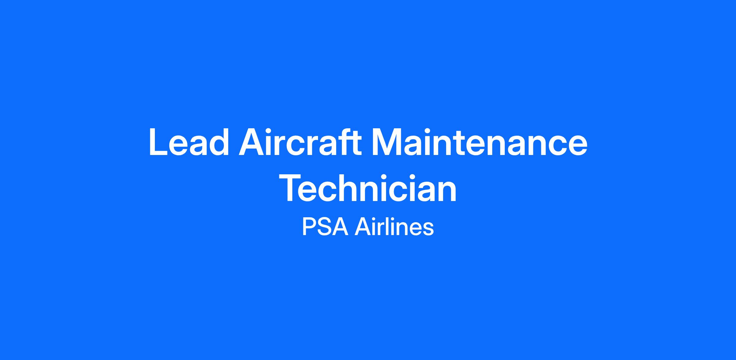 The Lead Technician impacts PSA Airlines' business growth by coordinating the activities of the assigned maintenance department. In directing the operations of the maintenance personnel, will work to minimize delays and increase production and efficiency.
