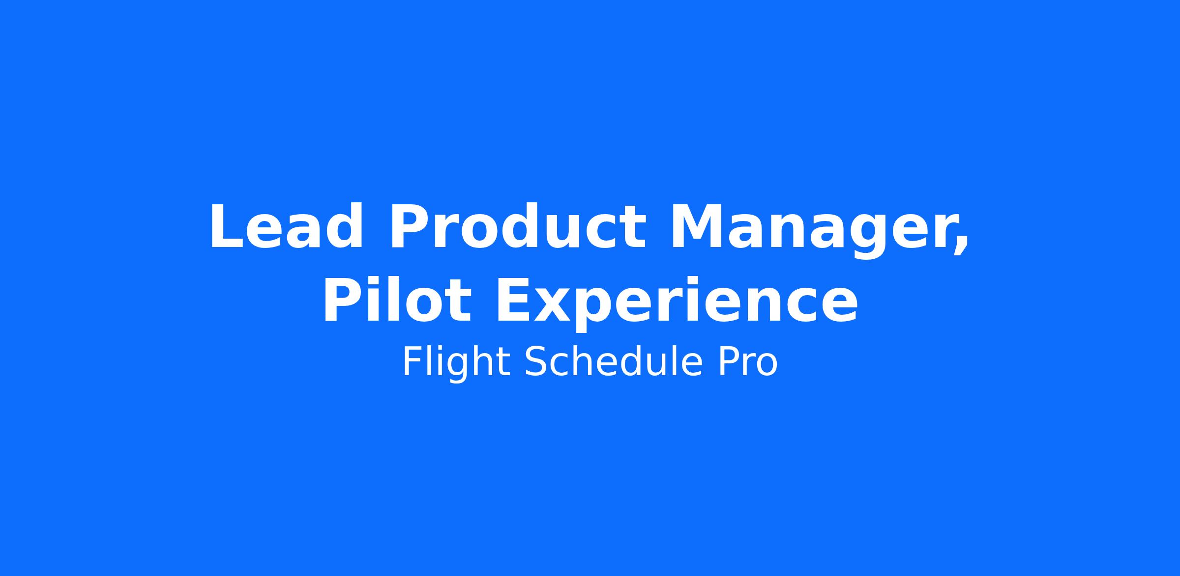 Lead Product Manager, Pilot Experience