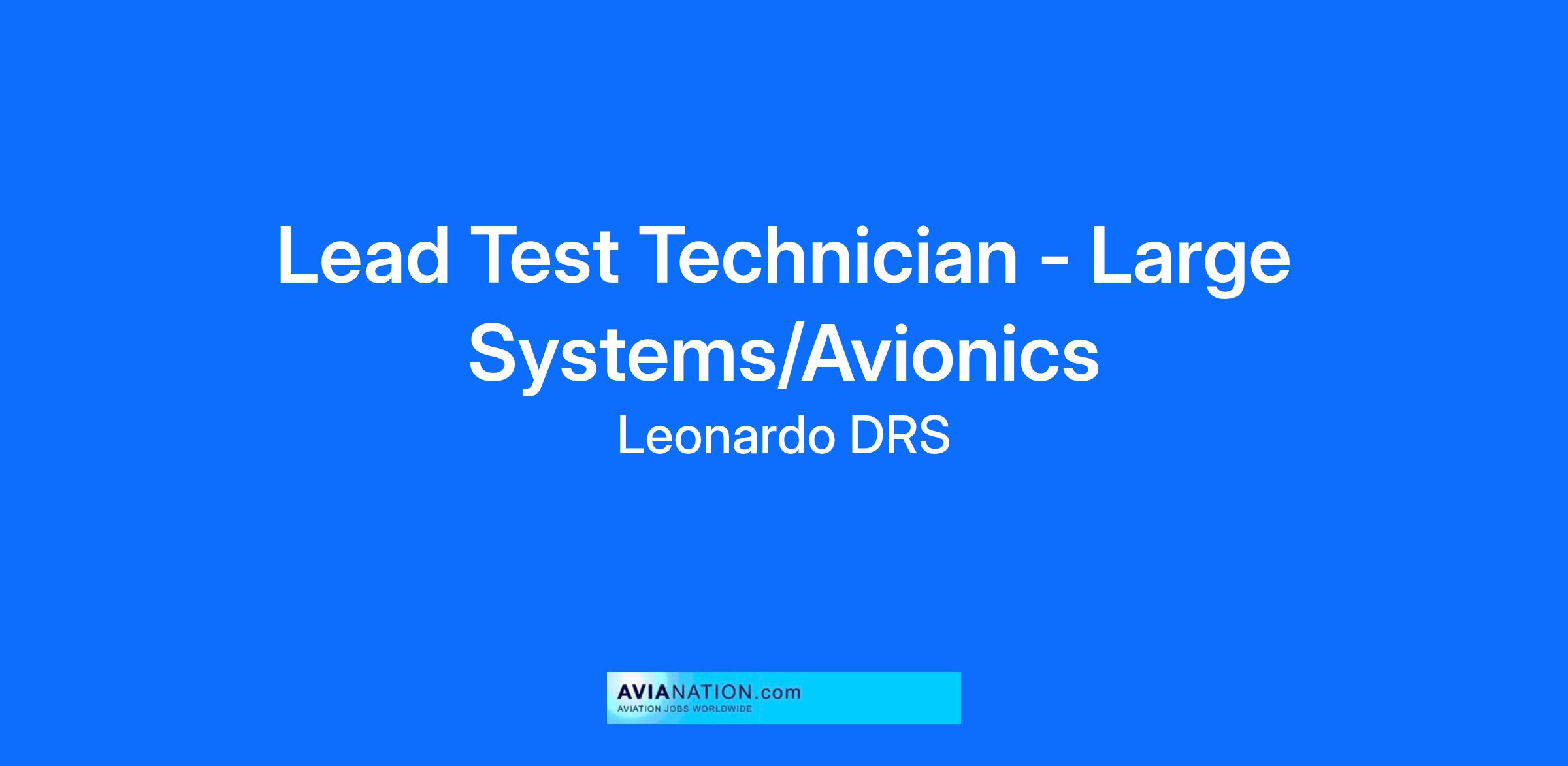 Leonardo DRS Naval Electronics has an immediate opening for a Lead Test Technician to provide technical support to engineers in performing standard testing processes on a variety of equipment and record the results for our Large Systems/Avionics focus factories.