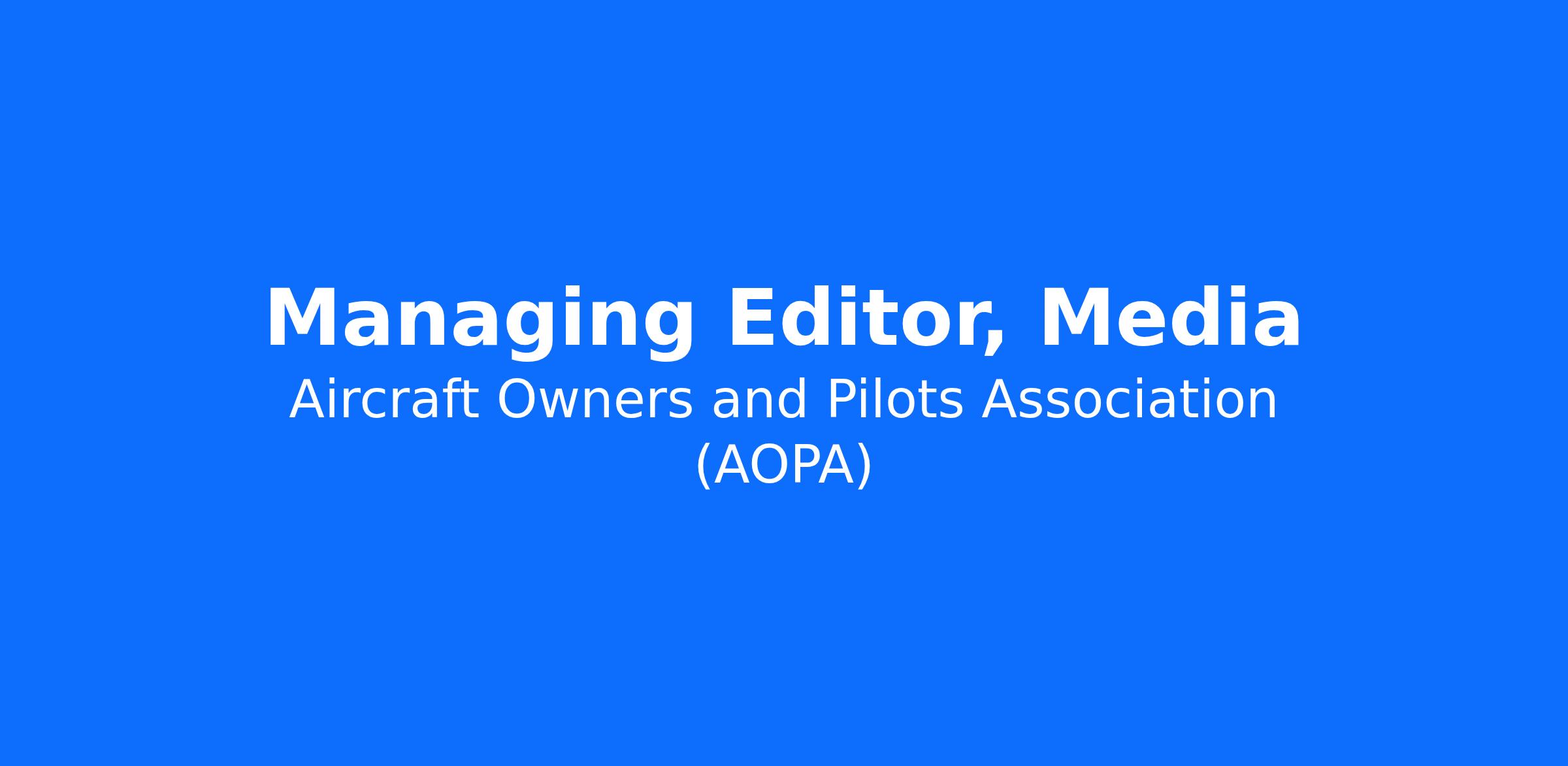 The managing editor oversees daily editorial operations of AOPA Pilot; AOPA Pilot, Turbine Edition; and Flight Training magazines. Responsibilities include ensuring the timely delivery of all print publications and associated digital content; editing for style, accuracy, and space; working closely with design, photography, and video staff on visual presentation and production; optimizing workflows; assigning writing and production tasks; managing relations with freelance contributors; setting and enforcing deadlines; and communicating editorial guidelines.