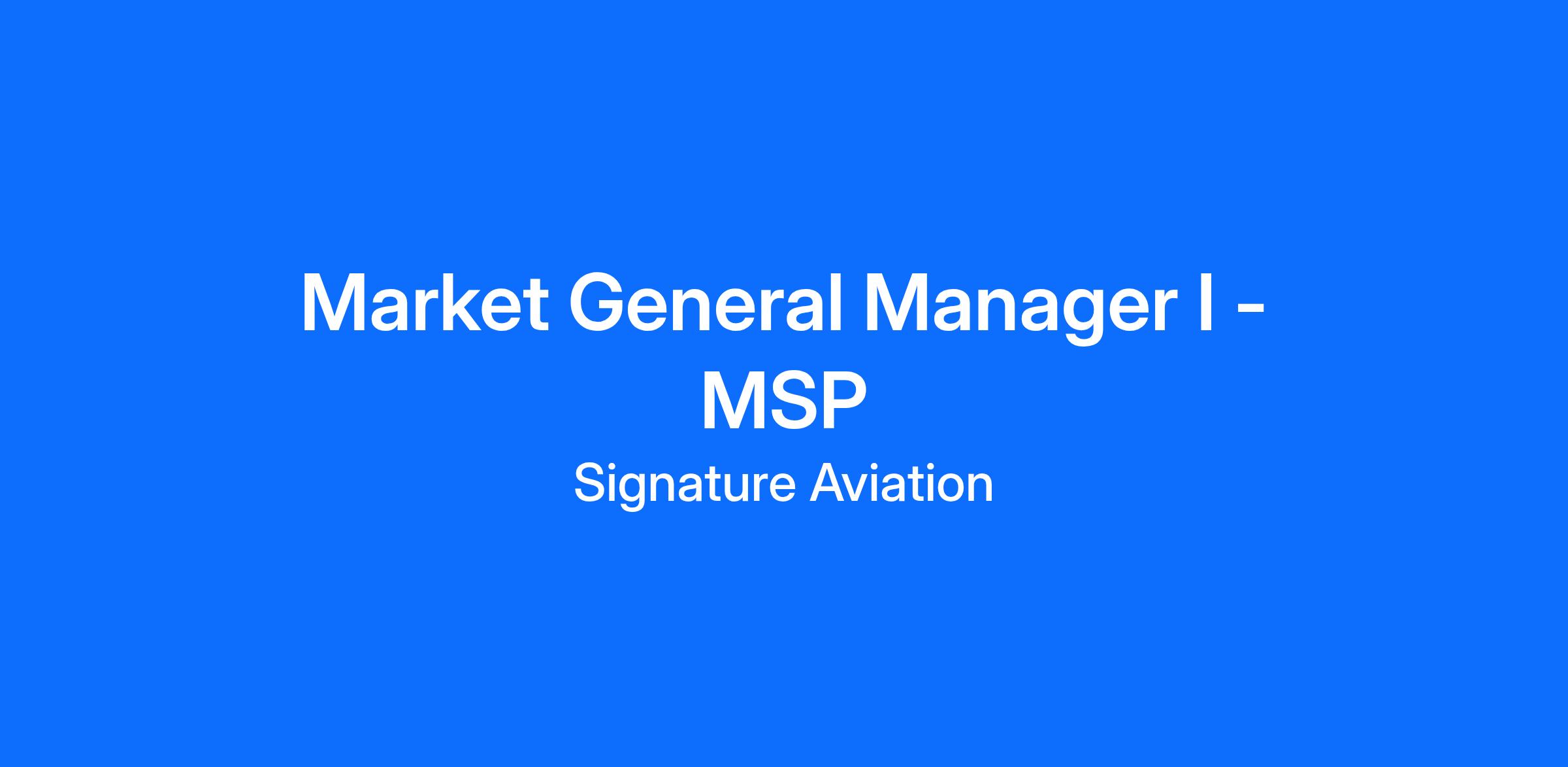 The Market General Manager oversees all aspects of 2 or more private aviation terminals (PATs) within a defined market focusing on operational excellence and creating exceptional guest experiences. This leadership role offers the opportunity to drive meaningful impact every day by serving as a culture champion and as a role model for Signature's values of Be One Team, Deliver Safety and Excellence, Shape the Future, and Lead with Trust. Whether coordinating ramp operations, guest services, or team performance, the Market General Manager ensure every aspect of the PATs run smoothly.