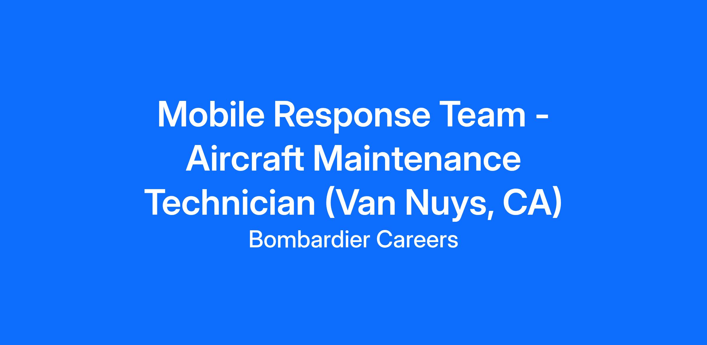 Job Mobile Response Team - Aircraft Maintenance Technician (Van Nuys, CA)