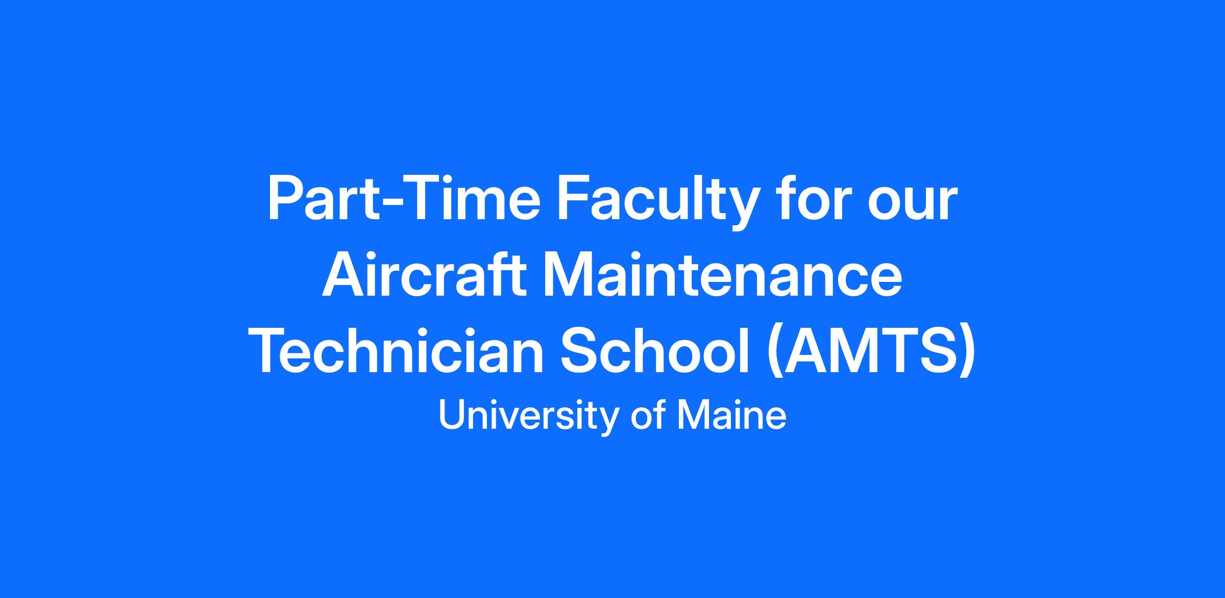 The University of Maine at Augusta invites applications for Part-Time Faculty at our Aircraft Maintenance Technician School (AMTS). The successful candidate will have experience with the subject matter in a wide range of aviation topics, including fixed-wing and rotorcraft.