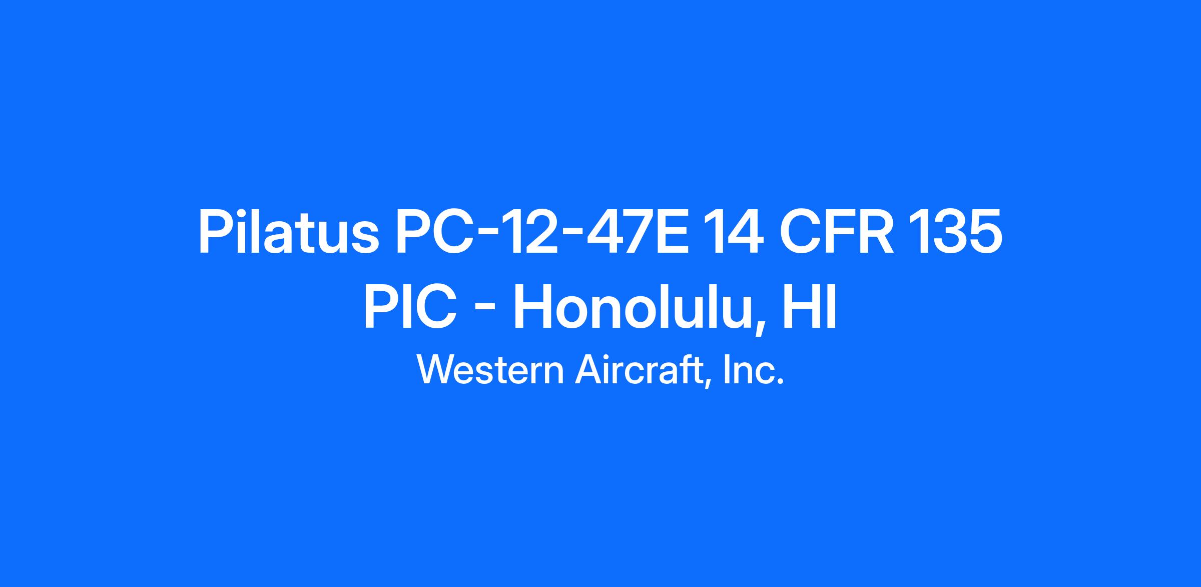 Pilatus PC-12-47E 14 CFR 135 Pilot-in-Command - Honolulu, HI