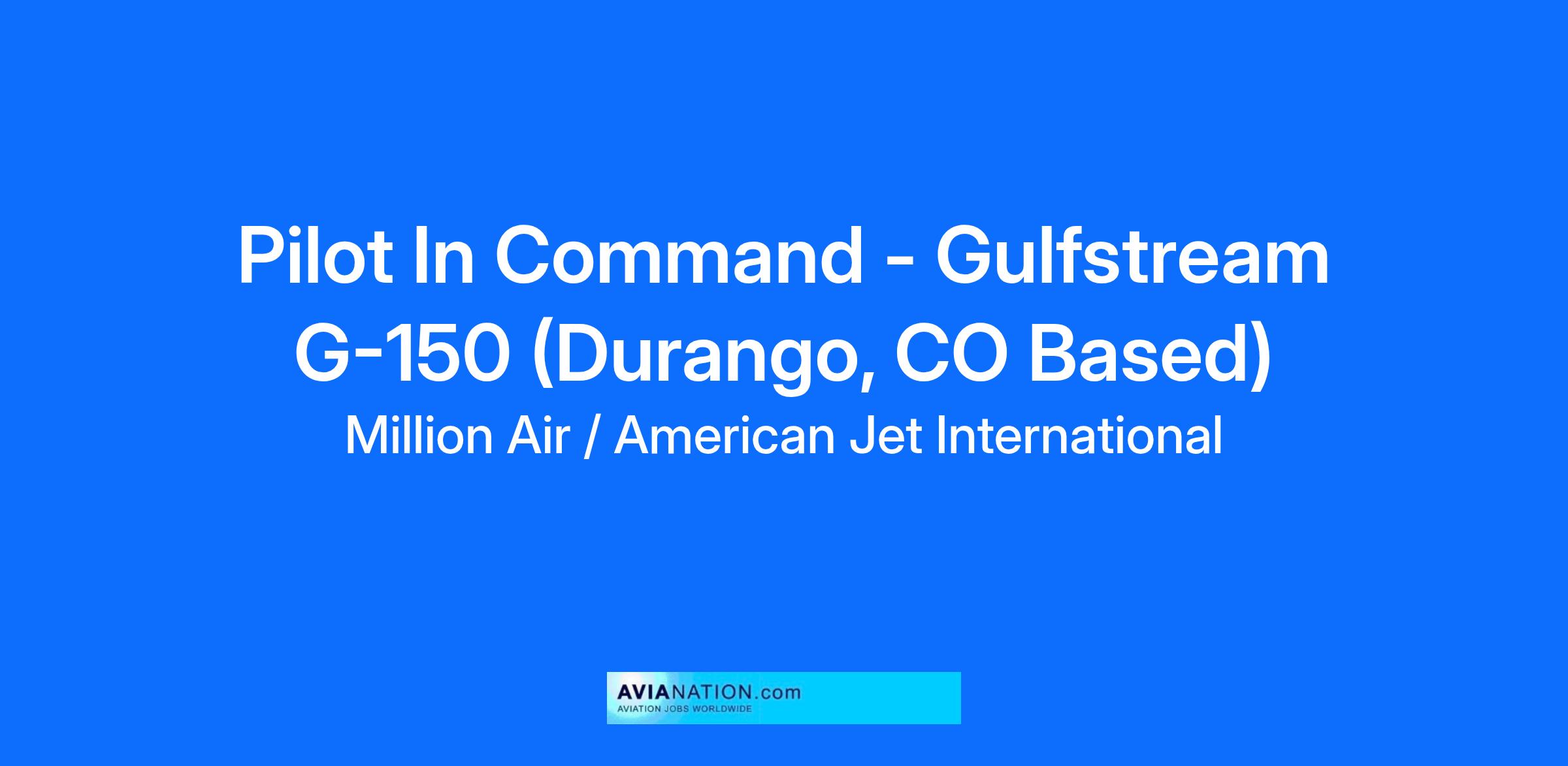 Pilot In Command - Gulfstream G-150 (Durango, CO Based)