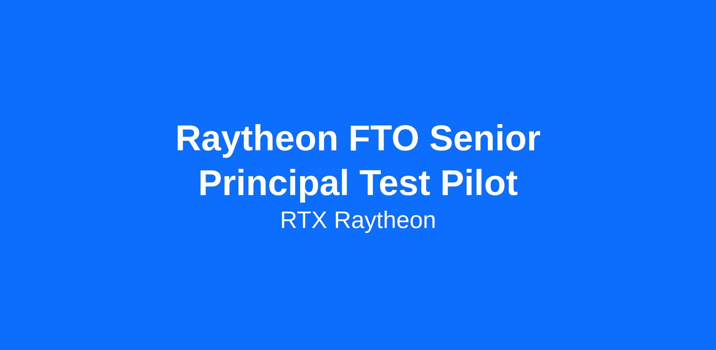 Raytheon Systems Engineering and Test Capabilities (SE&TC) is seeking a Test Pilot to join our Raytheon Flight Test Operations (FTO) team. This role is responsible for supporting multiple functions in the planning and execution of manned flight test missions. Responsibilities include coordination with engineering and maintenance, subject matter expertise on our flight test planning, mission execution, flight operations support, and coordinating logistics for flight test deployments. This position is an onsite role and can be based in either Ontario, California or Tucson, Arizona with occasional travel to support Raytheon Flight Test Operations.