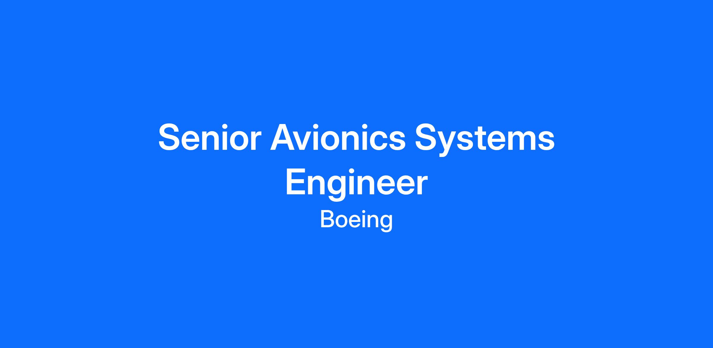 The Senior Avionics System Engineer will join the team in defining and integrating airplane electronic and electrical systems across our commercial fleet. This position will be assigned to work with one of the following systems: Air Data and Inertial, Datalink, Displays, Flight Management, Model Based Engineering, Radio Communication, Radio Navigation, Surveillance, and Thrust Management.