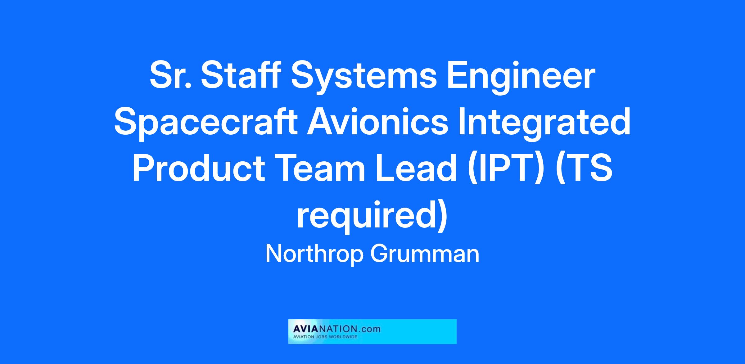 Northrop Grumman’s Space Sector is looking for a Spacecraft Avionics Integrated Product Team Lead who will own the responsibility for managing and leading a team of multi-disciplinary engineers, spanning multiple spacecraft avionics subsystems, to meet the product team’s program requirements and deliverables on schedule and within cost. This role has the authority to make engineering project management decisions and recommendations that have an impact on new business, program performance, design, development, and mission operations. This role reports to the program’s Engineering Program Manager and works with the subsystem leads to deliver on IPT’s commitments. The Avionics IPT is responsible for the development and integration of the flight software (FSW), guidance, navigation and control (GNC), altitude control system (ACS), command, data and handling (CD&H), electrical power subsystem (EPS), and other subsystems.