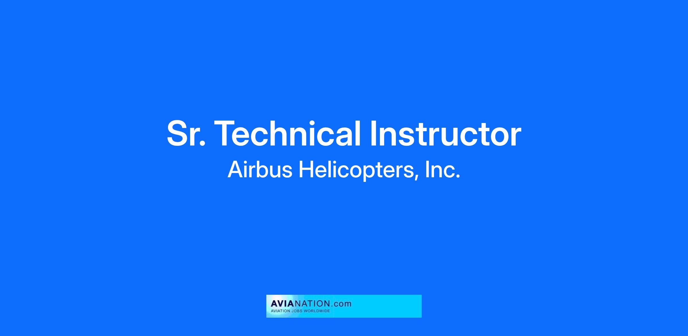 Airbus Helicopters is looking for a Senior Technical Trainer to join our Customer Training Team in Grand Prairie, TX.