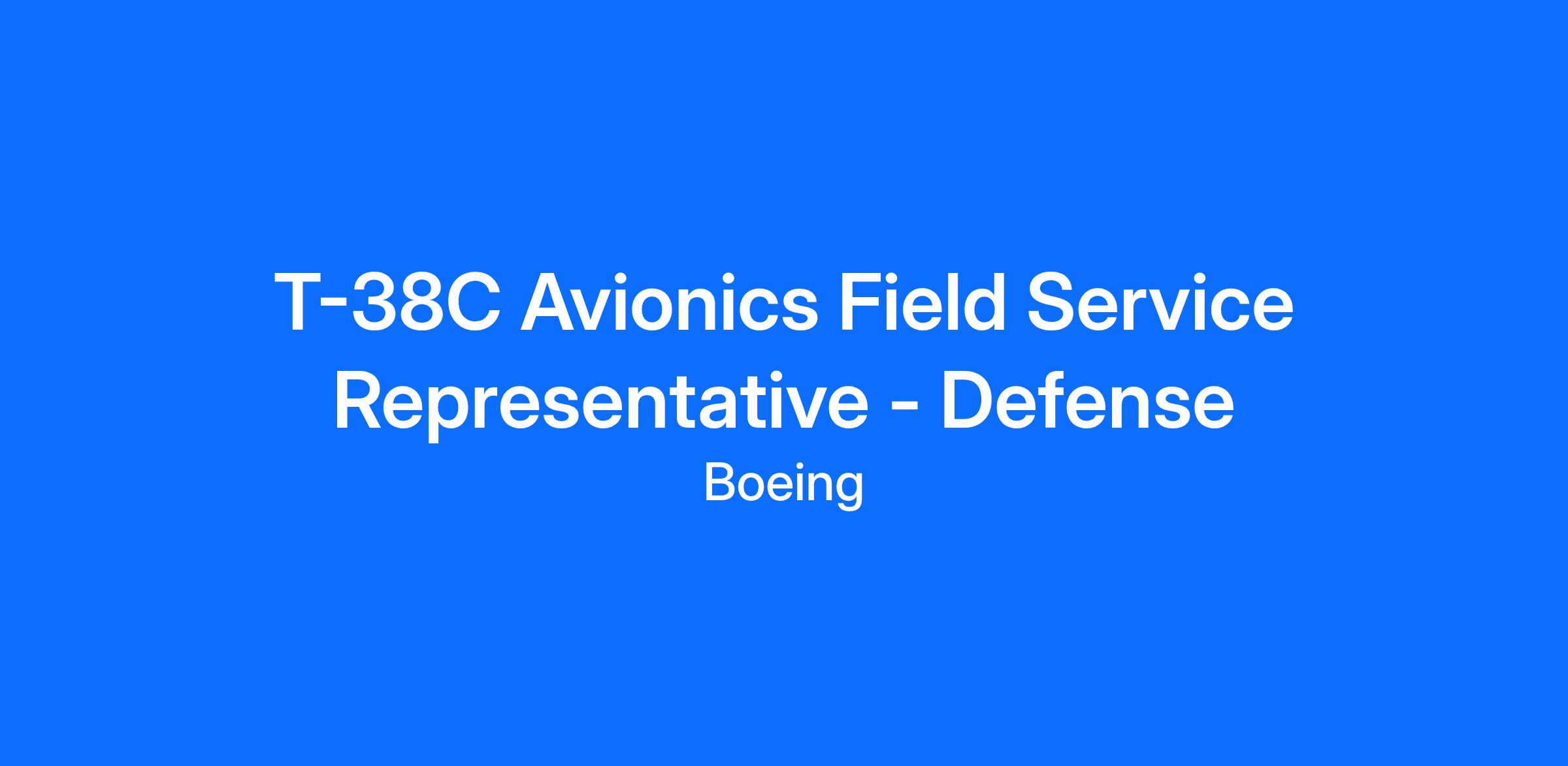Boeing Aerospace OperationsBoeing Global Services (BGS) is seeking an Experienced Field Service Representative (FSR) to represent the T-38C Avionics Component Integration (AVCI) Program and the Boeing Company at Edwards Air Force Base (AFB), California.