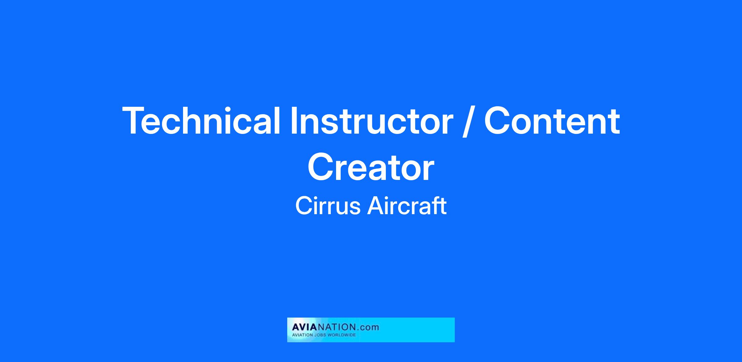 The Cirrus Field Service Training team is seeking a highly motivated, creative, and detail-orientated Technical Instructor & Content Developer. As a member of the Maintenance Training Team the Instructor/content developer will be a part of the overall goal of the Departments mission to provide a world class aircraft maintenance training experience for the Cirrus Aircraft Authorized Service Center (ASC) Network, Factory Service Center (FSC) Network and Various independent Aircraft Maintenance Technicians (AMTs) worldwide.