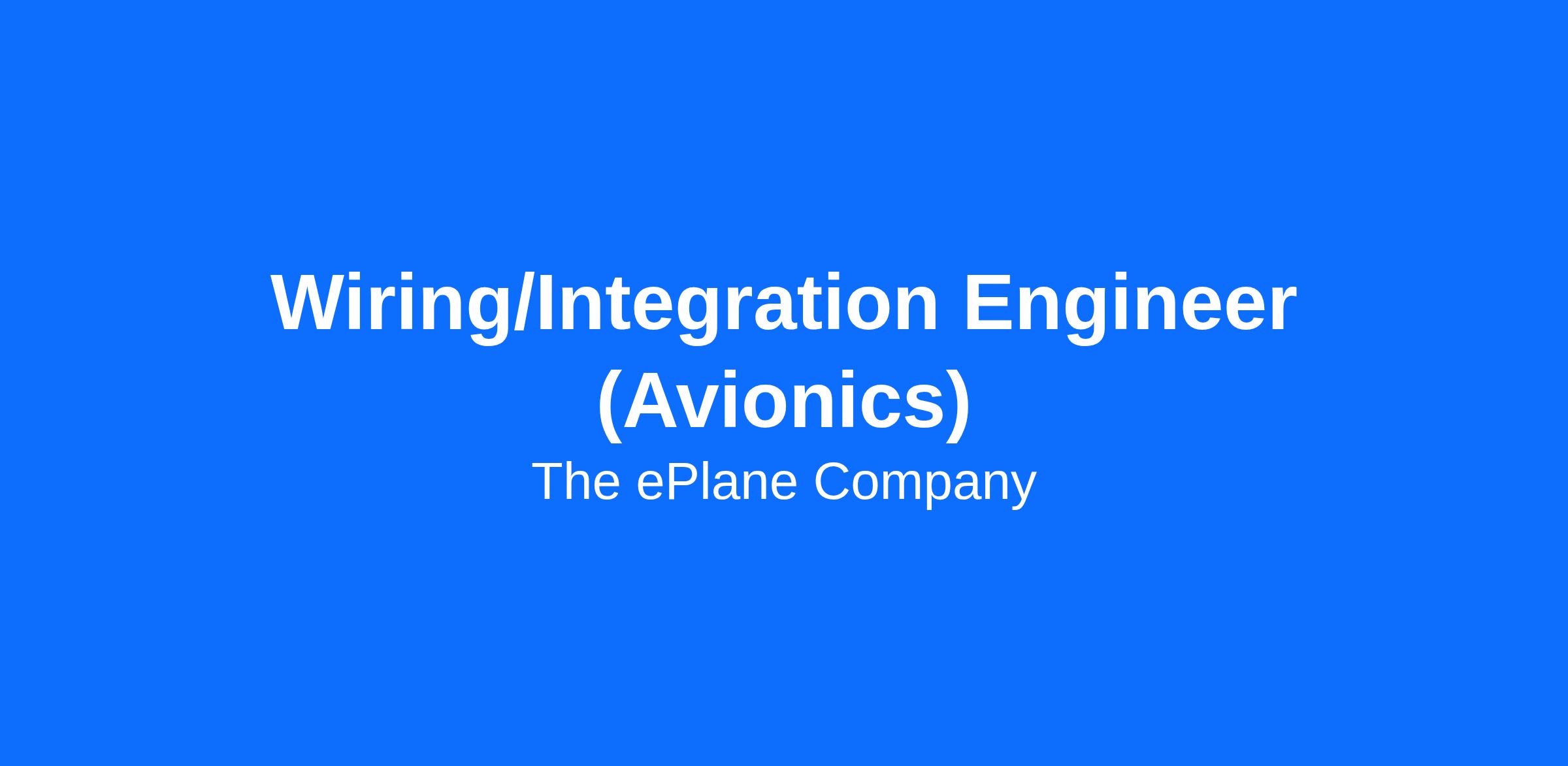 Wiring/Integration Engineer (Avionics)